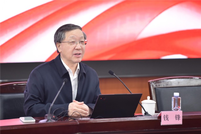 錢鋒結合參會經歷和學習體會,圍繞“兩會”的基本情況、兩個工作報告主要內容、“兩會”熱點話題等作了深入淺出的解讀,系統梳理了“兩會”的核心議程與政策導向,既立足兩會精神,又緊扣國家發展需求。報告通過解讀“兩會”政策藍圖,洞察國家發展脈搏,闡釋了政府工作報告中十大新詞背后的民生紅利與產業新機。他還結合政府工作報告中的科技熱詞,強調了高水平科技自立自強的最新部署,指出要開展好有組織的科研和協同創新,加強科技成果的轉化,深化教育科技人才一體改革。錢鋒指出,習近平總書記在看望參加政協會議的民盟民進教育界委員時的重要講話,就如何堅持正確辦學方向、深化教育綜合改革、強化教育對科技人才的支撐性作用等方面提出了明確要求,充分顯示出黨對教育工作的高度重視。作為高校,我們要把總書記關于教育、科技、人才的重要指示細化為路線圖和施工圖,推進教育高質量體系建設,同時要聚力科技創新和產業創新,發揮自身優勢,打造產教融合、科教融匯的人才培養體系,為提升國家創新體系整體效能貢獻智慧和力量。