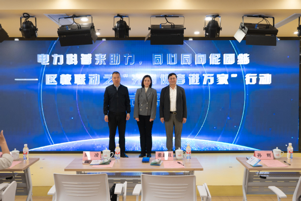 董鑫旺、陳凌、孫輝共同啟動“電力科普來助力,同心同向促團結——區(qū)校聯(lián)動之‘光明使者進萬家’行動”。