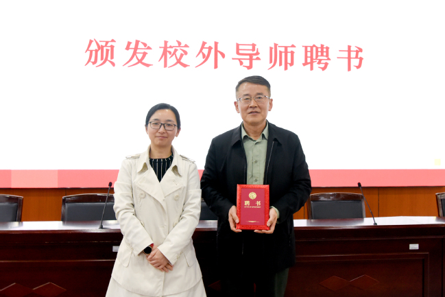 為深化校地合作、傳承實踐經驗,會上舉行校外導師聘任儀式。周婷為吳建斌頒發“校外導師”聘書,希望為學院人才培養提供更豐富的資源和實踐指導。