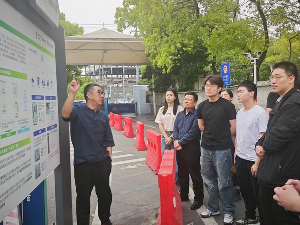 簽約儀式后,朱儼帶領(lǐng)師生參觀了解【i玖充電】寶安公路車網(wǎng)互動示范站的各種業(yè)態(tài)模式運(yùn)營。朱儼向同學(xué)們介紹V2G技術(shù)核心,講解演示電動汽車與電網(wǎng)雙向充放電智能終端,通過低谷儲能/高峰供電實現(xiàn)資源節(jié)約、增強(qiáng)經(jīng)濟(jì)效益。同學(xué)們對于汽車充換電的方式、目前國內(nèi)積極推進(jìn)的“新能源汽車充放電的虛擬電網(wǎng)容量設(shè)備”以及新能源汽車行業(yè)電池技術(shù)、充換電設(shè)備研發(fā)有了更多了解。