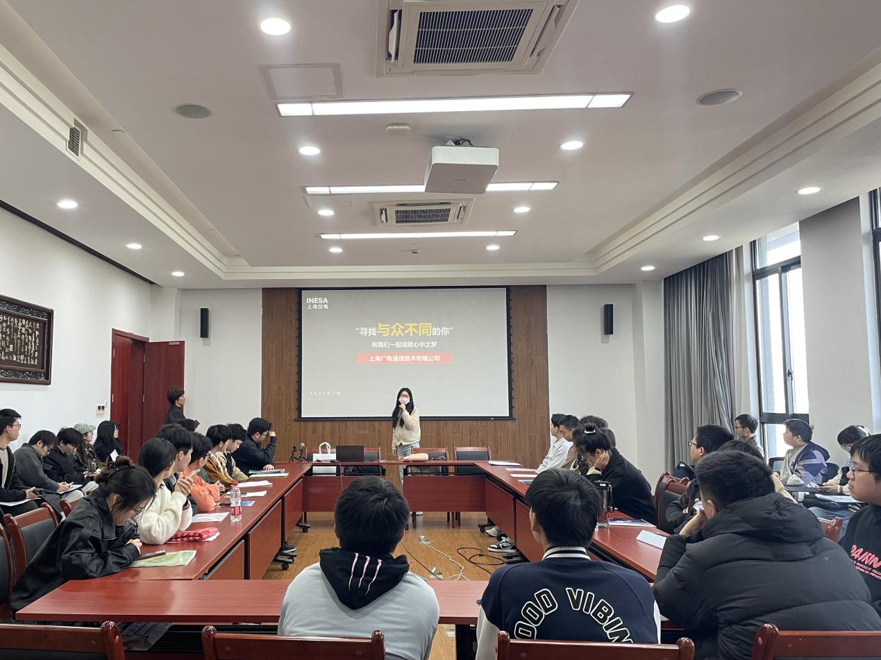 為搶抓春季促就業(yè)工作攻堅(jiān)期,加快推進(jìn)2025屆畢業(yè)生就業(yè)進(jìn)程,近日,電信學(xué)院在學(xué)術(shù)樓105會(huì)議室舉辦上海廣電通信技術(shù)有限公司校園宣講招聘會(huì)。本次宣講會(huì)吸引我校本研40余名學(xué)生到場(chǎng)參加。