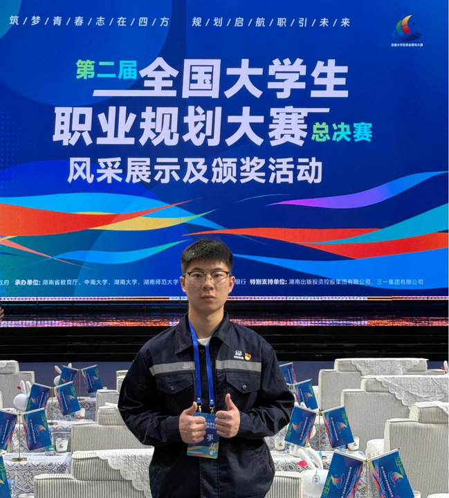 4月16日-19日,“筑夢青春志在四方,規劃啟航職引未來”第二屆全國大學生職業規劃大賽全國總決賽在湖南長沙舉行。我校自動化工程學院學生李威鴻沖出重圍,斬獲全國總決賽成長賽道高教組金獎(全國共42人),這是我校繼首屆全國大學生職業規劃大賽獲得全國總決賽金獎后,再次奪得此項賽事的最高獎項,展現出上電學子深厚扎實的專業底蘊和積極主動的職業規劃意識。比賽期間,校黨委副書記、副校長朱克勇親臨現場指導并慰問。