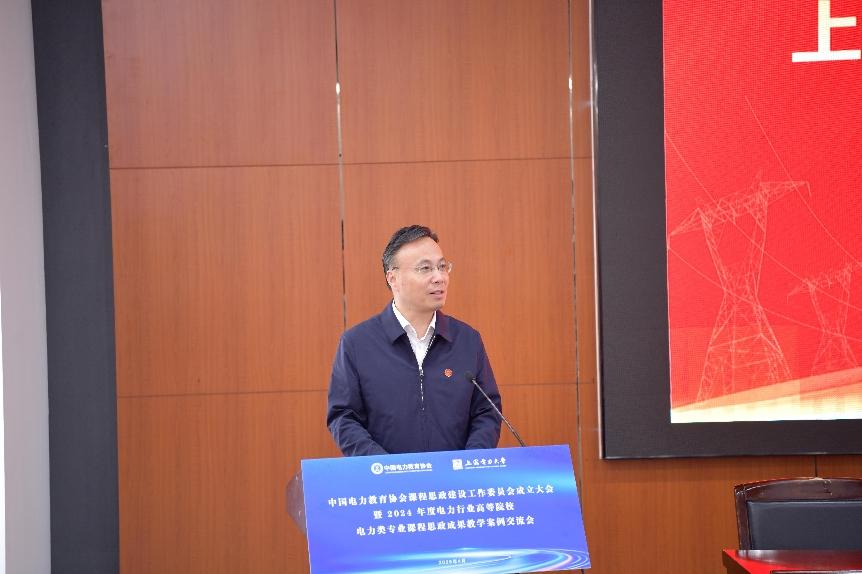 校黨委副書記、校長顧春華在致辭中指出,中國電力教育協會課程思政建設工作委員會(以下簡稱“中電教協課程思政委員會”)成立,既是貫徹落實黨中央決策部署的必然要求,也是深化教育教學改革、推動內涵式發展的主動作為。我校作為中電教協課程思政委員會的主任委員單位,將始終把立德樹人根本任務放在首位,系統謀劃、統籌推進課程思政建設,落實落細課程思政實施方案,深挖“上電”精神富礦及各學科歷史傳統,將“上電精神”深度融入各類課程建設,逐步形成一批可復制可推廣的具有“上電特色”的課程思政教學改革典型案例和特色做法。