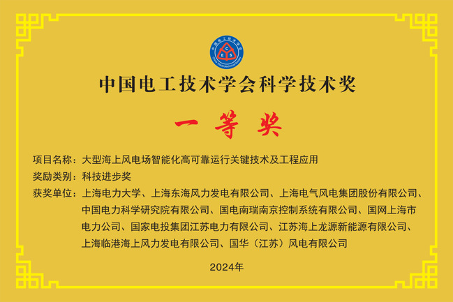 4月19日,2024年度中國電工技術學會科學技術獎頒獎大會在北京隆重召開。我校海上風電研究院牽頭、符楊教授為第一完成人的“大型海上風電場智能化高可靠運行關鍵技術及工程應用”成果獲中國電工技術學會科技進步一等獎。這是我校中國電工技術學會科技獎的首次重大突破,也是我校海上風電技術教育部工程中心、上海市高水平創新團隊建設的重要成果。