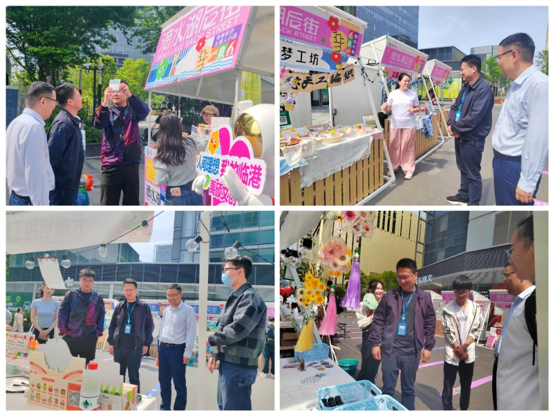 在熙熙攘攘的滴水湖后街,我校四支學生創業團隊成功入駐青年創業市集。我校學生將創意轉化為實際的產品或服務,有DIY萌寵掛件的“織夢工坊”,有能夠封存滴水湖植物的滴膠手作“植韻拾光”,還有通過快拼積木獲得滿滿成就感的“卡通創趣工坊”,以及可以定制氣球得到甜蜜暴擊的“花樣氣球”。游客們紛紛在攤位前駐足問詢購買。楊浩昊介紹,青創市集是第十四屆“藍海·逐夢”大學生創業訓練營賽道之一,組委會通過評審、篩選出16個青年大學生優質創業項目,并為團隊提供1000元創業基金和后勤支持等,創業團隊可在滴水湖后街進行為期一月的創業售賣活動,對于效益高轉化的好項目,組委會將提供更多的創業支持和指導。朱克勇與創業學生們進行親切交流,了解創業緣起、供貨來源、合作途徑、營收情況等,對青年學生們主動走出課堂、走進社會,用創意轉化成生動鮮活的實踐成果表示肯定,鼓勵青年們繼續保持敢想敢做的銳氣。