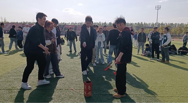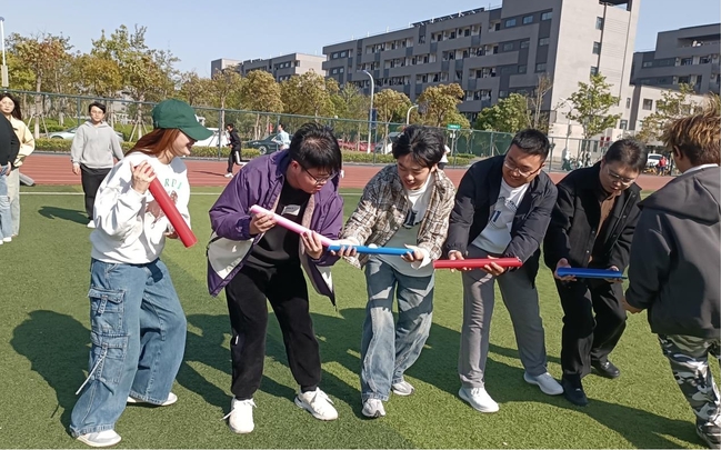 本次素質(zhì)拓展活動(dòng)設(shè)置珠行萬里、環(huán)游世界、沙包投擲、投壺、拔河等特色活動(dòng)。沙包投擲和投壺現(xiàn)場(chǎng),同學(xué)們?nèi)褙炞ⅲ跃珳?zhǔn)的技巧展現(xiàn)風(fēng)采;珠行萬里中,團(tuán)隊(duì)成員默契配合,用接力傳遞的方式詮釋協(xié)作智慧;環(huán)游世界項(xiàng)目則激發(fā)集體智慧,大家群策群力,在限時(shí)挑戰(zhàn)中突破自我?;顒?dòng)中,導(dǎo)師們與學(xué)生并肩作戰(zhàn),共同制定策略、攻克難關(guān)。最后以專業(yè)為單位的拔河比賽將活動(dòng)推向高潮,各專業(yè)參賽隊(duì)伍士氣高漲,隨著裁判員的一聲令下,雙方奮力拼搏,全場(chǎng)師生齊心協(xié)力、鼓勁加油,場(chǎng)面氣氛熱烈。