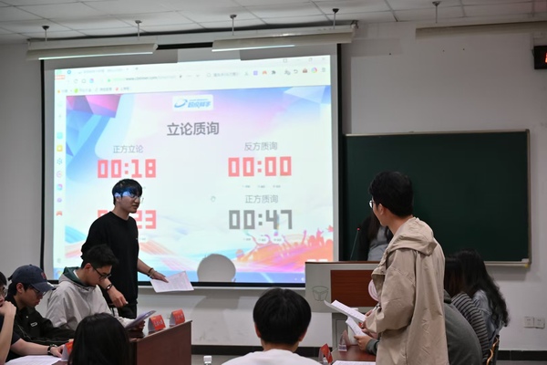 第二輪辯題錨定中國式現代化進程中的青年選擇,剖析個人發展與國家戰略的耦合路徑。辯論中融入“碳達峰”背景下的就業選擇,以及鄉村振興與人才流動等時政案例,推動研究生在小我與大我的思辨中建構使命意識。