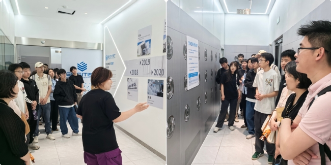會前,同學(xué)們參觀了匠嶺科技(上海)有限公司的潔凈室、發(fā)展歷程展覽區(qū)、核心產(chǎn)品系列展區(qū)。潔凈室內(nèi),高度自動化與智能化的生產(chǎn)設(shè)備有序運轉(zhuǎn),同學(xué)們紛紛感嘆科技制造環(huán)境的嚴(yán)謹(jǐn)與精密。工作人員為同學(xué)們講解了公司的發(fā)展歷程,從戰(zhàn)略布局到未來愿景,從技術(shù)創(chuàng)新到人才需求,她的介紹深入淺出,充分展示了企業(yè)的創(chuàng)新實力和行業(yè)領(lǐng)先地位,讓同學(xué)們對公司的發(fā)展方向有了清晰的了解。