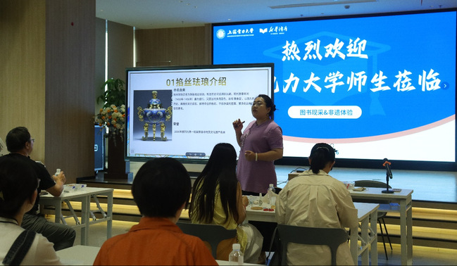 在書城非遺體驗區,非遺傳承人李玲娣老師,以一段視頻為引,系統講解這門燕京八絕工藝的前世今生。從元代銅胎掐絲琺瑯的興起,到明清宮廷藝術的鼎盛,再到當代創新設計的破圈,師生們在歷史脈絡中觸摸中華文化的兼容并蓄與歷久彌新。