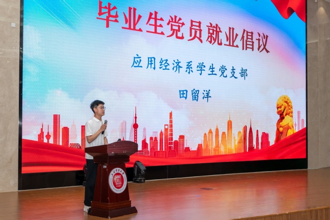 黨員代表田留洋宣讀就業倡議,號召全體畢業生黨員提高政治站位,積極投身就業實踐,發揮先鋒模范帶頭作用,主動宣傳政策,增強防騙意識,將個人奮斗的“小目標”融入國家發展的“大藍圖”,爭做“一面旗幟、一個堡壘”。