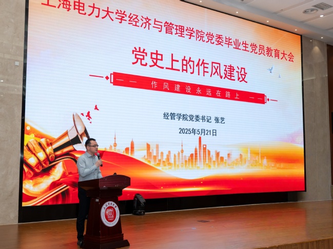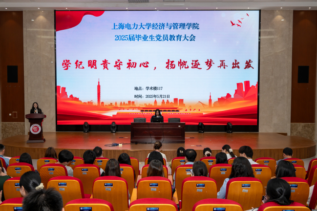 5月21日下午,經濟與管理學院黨委在臨港校區學術樓117會議室召開2025屆畢業生黨員教育大會。學院黨委書記張藝、學院黨委副書記孟延新、專職組織員周穎及各學生黨支部書記、畢業班輔導員出席,全體畢業生黨員參加。