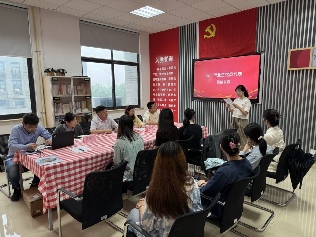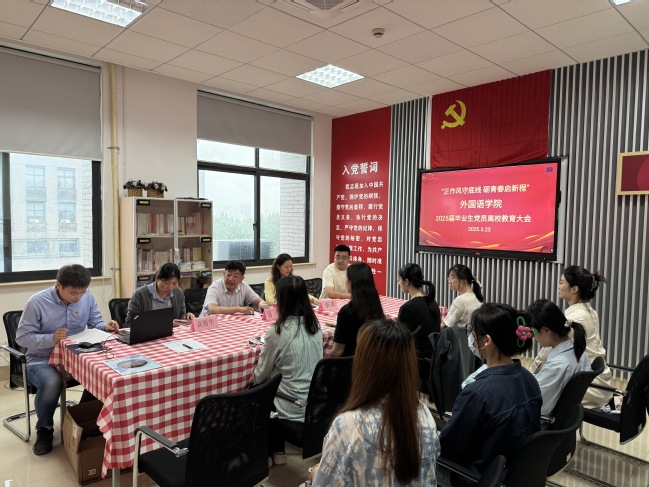 余嘉作總結(jié)講話,她向畢業(yè)生黨員在校期間取得優(yōu)異成績表示祝賀,并感謝了他們對學(xué)院黨委工作的支持。她對畢業(yè)生黨員提出四點希望:一是牢記“國之大者”,做信仰堅定的“翻譯實踐者”;二是勇?lián)皶r代之責(zé)”,做融通中外的“文明擺渡人”;三是永葆“赤子之心”,做扎根人民的“青春趕考人”;四是嚴守“紀律之戒”,做清正廉潔的“模范踐行者”。