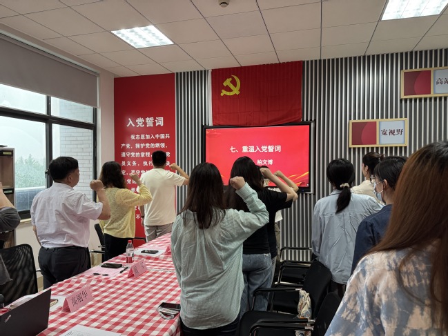 范俊雄介紹畢業(yè)生黨員組織關(guān)系轉(zhuǎn)接的主要流程和注意事項,并明確紀律要求。大會最后,在柏文博的帶領(lǐng)下全體參會人員重溫入黨誓詞。