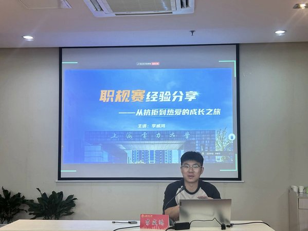 李威鴻以從抗拒到熱愛的成長蛻變為主線,生動講述了自己的備賽歷程,鼓勵同學們一定要充分相信自己可以不斷挑戰自我,在比賽中歷練與蛻變。他現場演示了如何運用人工智能工具提升備賽效率、如何通過各大平臺學習PPT動態設計以及掌握最新賽事資訊等,樸實誠懇、深入人心。