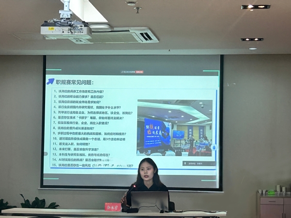 張裴酈立足大賽宗旨,以“職業規劃的邏輯閉環”為切入點,圍繞背景意義、賽事組織、備賽要點、大賽復盤四大板塊展開;結合大賽成長賽道方案拆解職業目標制定邏輯,闡釋大賽意義;聚焦成長與就業兩賽道間評審差異,對比展示往屆金獎作品與典型案例,重點解析生涯發展報告的撰寫要點,強調需立足行業痛點、凸顯個人適配性;通過“選擇現專業的原因”“電力行業相關的職業和崗位有哪些”等現場互動提問,引導學生主動探索職業環境、拓寬求職視野。