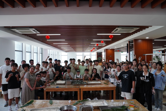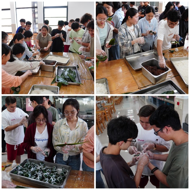 活動伊始,食堂師傅為大家詳細講解粽子具體包制方法。隨后,師生們自由組合,圍桌紛紛動手實踐。折粽葉、填糯米、放餡料、捆扎線,大家相互學習、交流心得,從生疏到熟練,一個個棱角分明、飽含心意的粽子逐漸成型。活動現場粽葉飄香,歡聲笑語不斷,洋溢著濃厚的節日氛圍和溫馨的師生情誼。