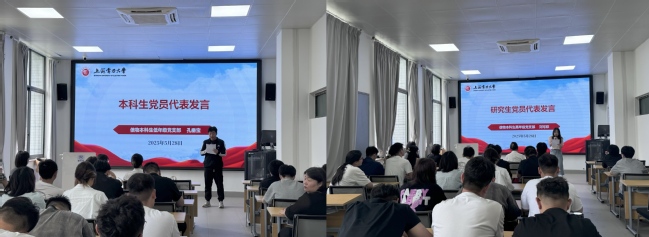 信物本科生低年級黨支部本科生黨員孔垂寶、信物本科生高年級黨支部研究生黨員劉可欣作為畢業生黨員代表發言,他們飽含深情地回憶了在母校求學的時光,對學院黨委的關懷培養、老師同學們的支持和陪伴表示了誠摯的感謝,表示要始終保持共產黨員的先進性和純潔性,在未來的工作和學習生活中勇于擔當、甘于奉獻,聽黨話、跟黨走,在新的征程上行穩致遠。