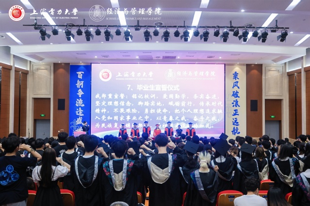 “銘記校訓,愛國勤學,務實奮進,堅定理想信念,腳踏實地,砥礪前行,傳承時代精神,不畏艱險,勇擔使命,把個人理想追求融入黨和國家事業之中,以青春之我、奮斗之我,為民族復興鋪路架橋,為祖國建設添磚加瓦。”錚錚誓言、字字鏗鏘!滿懷激情的畢業獻詞吶喊出上電經管學子的心聲與壯志。
