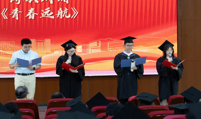 在激昂的旋律中,畢業生代表及畢業班輔導員共同朗誦詩歌《青春遠航》,吹響新征程號角,全體畢業生向老師們鞠躬致謝,再次表達對母校、師長的感恩和感激之情。