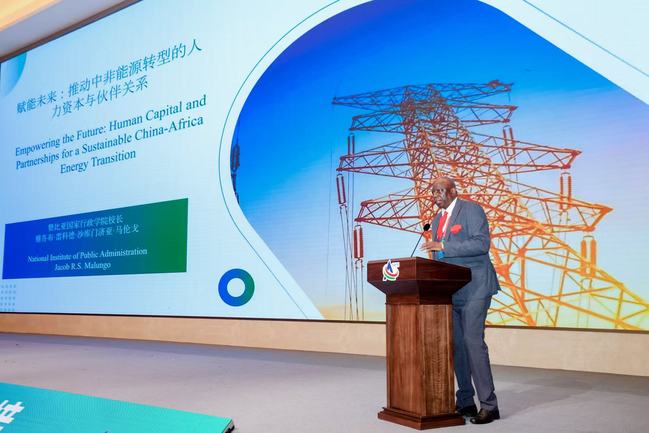 下午的“中非國際產教融合交流對接”活動由顧春華主持。中國電力企業聯合會秘書長郝英杰、岳陽市市長李摯、贊比亞能源部政策與規劃司高級規劃師維克多?欽甘谷等嘉賓致辭。中電聯人才測評中心有限公司董事兼總經理劉志明、肯尼亞電力公司能源研究院院長耶利米?基普塔努伊?基普拉加特、贊比亞國家行政學院校長雅各布·馬倫戈、國家電網有限公司技術學院分公司副院長蘇慶民、盧旺達私人能源投資協會清潔能源部門總監埃胡迪·辛吉羅等做專題分享。