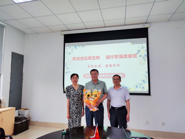 6月10日,外國語學院在經外樓B401會議室舉辦趙德全老師的榮休儀式,同時作為教職工政治理論學習之“師德講堂”。學院領導班子成員和學院教師代表參加儀式,儀式由外國語學院黨委書記余靜主持。