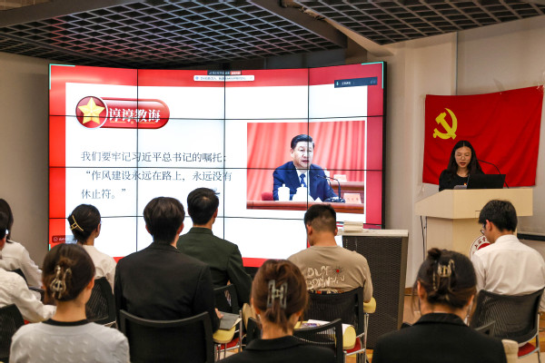 黨課引領(lǐng),明確青年作為。為了全面加強黨的紀(jì)律建設(shè),黨支部書記程蓓佳講授專題黨課。程蓓佳強調(diào),青年黨員要堅決破除“四風(fēng)”,服務(wù)同學(xué),清正廉潔,爭做模范先鋒,并通過分享馬克思主義學(xué)院楊紅娜老師的廉潔教育實踐案例,號召黨員將遵紀(jì)守紀(jì)、廉潔務(wù)實的精神融入生活點滴,在服務(wù)同學(xué)中踐行初心使命,展現(xiàn)廉潔教育與育人融合典范。