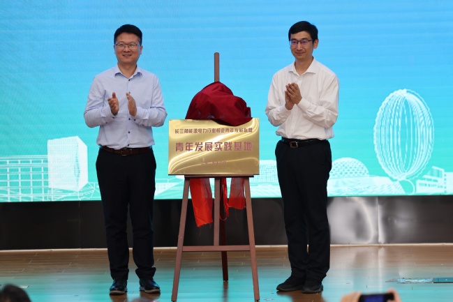 唐志宇和朱克勇共同為長三角能源電力行業校企青年發展實踐基地揭牌。