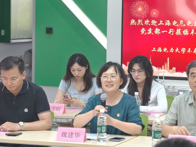 魏建華對上海電氣電站工程公司設計公司黨支部一行的到來表示歡迎,并圍繞學校、學院基本情況作簡要介紹。她講到,此次共建是落實新時代黨的建設總要求、推動黨建與業務深度融合的創新實踐,期待雙方進一步推動組織共建、加強資源共享、實現合作共進,把共建成果體現在改革創新、業務發展、隊伍建設、人才培養、社會責任等各個方面,為服務國家“雙碳”目標和地方經濟社會發展注入強勁動能。