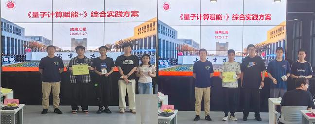 6月27日,實訓迎來成果答辯環節,學生們以 “基于量子神經網絡對手寫數字圖片進行分類” 等實踐成果,開啟最終的學習驗收與思維碰撞。答辯現場,學生小組依次登臺。面對由企業專家、校內導師組成的評審團,他們從容展示量子神經網絡模型構建思路,借助大屏呈現訓練數據曲線、分類準確率等成果。從量子比特初始化策略,到量子門操作序列優化,再到模型在手寫數字分類任務中的應用效果,學生們詳細拆解實踐過程,將實訓中積累的技術細節與創新思考一一呈現。這場答辯,不僅是實訓成果的集中展示,更是學生從 “技術實踐者” 向 “創新思考者” 進階的見證。通過與企業專家的交流,學生們明晰自身在量子計算應用探索中的優勢與不足,為后續深入學習、參賽備賽校準方向,也讓校企協同培養的成果,在思維交鋒中綻放更耀眼的價值,持續賦能量子科技人才成長。最后,企業專家為優秀團隊及個人頒發了獎品和證書。