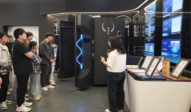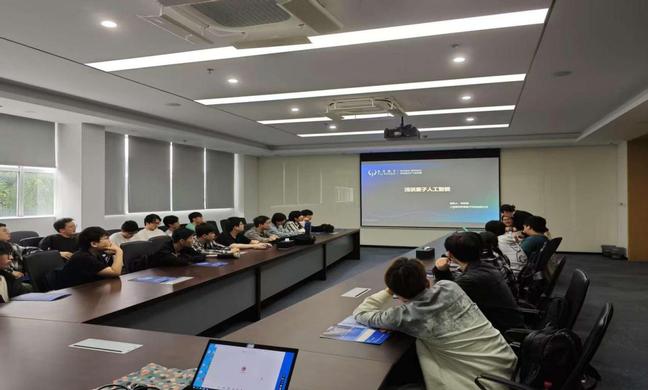6月23日,實訓首日開展圖靈量子現場教學。學生們深度參觀圖靈量子企業,沉浸式感受量子科技企業的研發氛圍。在企業展廳,企業老師化身“量子引路人”,帶領學生穿梭于量子科技的奇妙世界。目光所及,超晶圓級異質集成光芯片、多芯光纖連接器件等“黑科技”展品有序陳列,企業老師結合展板與實物,詳解圖靈量子專利技術——如何突破傳統光刻設備限制,打造超大晶圓尺寸光芯片,以及這些芯片在量子計算、能源電力場景的應用潛力。來到量子計算設備區,兩臺印有“圖靈量子”標識的黑色機柜尤為醒目,內部精密的光學元件與線路,構建起量子計算的硬件基石。圖靈量子教育事業部經理宗延蓉為同學們揭開量子計算神秘面紗:從超導、離子阱到光量子技術路徑差異,對比不同技術在可擴展性、相干時間的優劣勢,讓抽象的量子理論變得觸手可及。展廳一側,巨大的時間軸屏幕閃爍著圖靈量子的發展軌跡——從2021年成立到突破多項量子光芯片技術,每一個節點都標注著量子科技的前進腳步。學生們或駐足觀看教育產品的互動演示,或圍在量子計算模擬器前嘗試操作,在“可看、可觸、可互動”的體驗中,初步構建量子計算知識框架。這場參觀,讓學生跳出書本理論,觸摸到量子科技的產業脈搏,為后續實訓筑牢認知根基,也點燃了探索“量子+人工智能”融合創新的熱情。