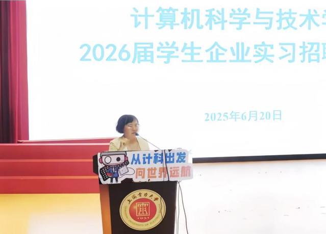 在實習招聘宣講會上,魏建華代表學院向參加實習招聘的企業(yè)表達誠摯感謝,感謝企業(yè)對學院學生實習就業(yè)工作的支持,并從“AI+能源電力”應(yīng)用型人才培養(yǎng),“3+X”企業(yè)實習實踐等角度,全面闡述實習實踐對于畢業(yè)生學業(yè)與成長的重要意義。她激勵同學們以積極的態(tài)度投入實習,在實踐中深化專業(yè)知識,提升自身競爭力,為明年的畢業(yè)與就業(yè)打好基礎(chǔ)。