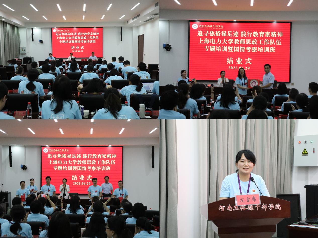 6月30日,我校“追尋焦裕祿足跡,踐行教育家精神”教師思政工作隊伍專題培訓暨第四期教師國情考察培訓班結業儀式在河南焦裕祿干部學院第二教學樓二樓四號教室舉行。河南焦裕祿干部學院黨委委員、副院長王書奇,我校黨委教師工作部副部長、人事處副處長諸俊,我校36名學員及河南焦裕祿干部學院部分教師參加。儀式由培訓班第二組組長,我校人文藝術學院專職組織員曹曉聲主持。