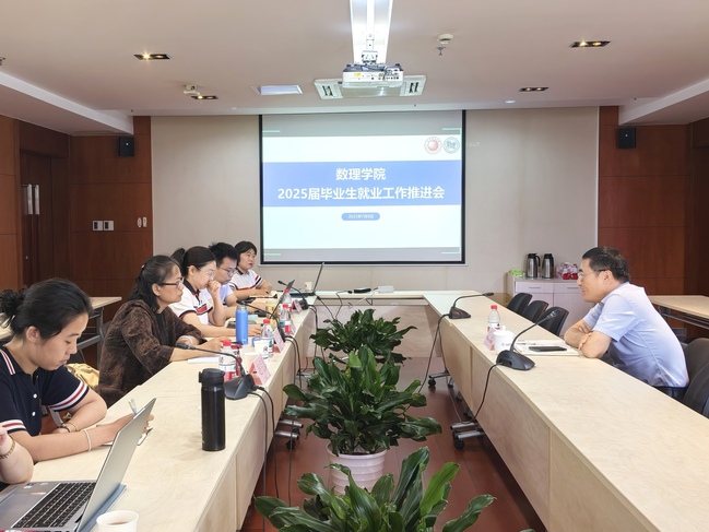 為扎實(shí)推進(jìn)2025屆畢業(yè)生就業(yè)工作,幫助學(xué)生實(shí)現(xiàn)高質(zhì)量充分就業(yè),數(shù)理學(xué)院于7月9日召開畢業(yè)生就業(yè)工作推進(jìn)會(huì)。副校長(zhǎng)符楊,數(shù)理學(xué)院黨委書記徐廣新,黨委副書記、常務(wù)副院長(zhǎng)朱瑞及其他班子成員,全體畢業(yè)班輔導(dǎo)員出席會(huì)議。會(huì)議由徐廣新主持。