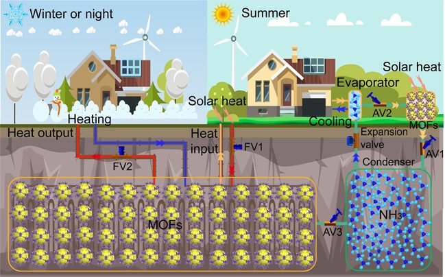 吸附式熱能轉換和儲存是高效利用太陽能和工業余熱等低品位熱能的關鍵技術之一,通過吸附劑與吸附質的吸附和解吸過程可實現熱驅動的可持續供暖、制冷、太陽能收集和燃料儲存等應用。該領域研究涉及工程熱力學、傳熱學、配位化學、聚合物功能材料、機械工程等學科,具有顯著學科交叉特色。金屬有機框架(MOFs)吸附劑因其具有高比表面積和孔體積以及清晰結構,而氨工質具有寬溫區和高焓值等特點。在“雙碳”和極端氣候頻發背景下,基于MOF-氨工質對的固體吸附系統具有高儲能密度和溫度適應性、低熱損失等優勢,如何構筑高性能吸氨的MOF吸附劑和新型吸附循環是破解極端氣候下可持續熱能轉換與儲存應用難題的關鍵。