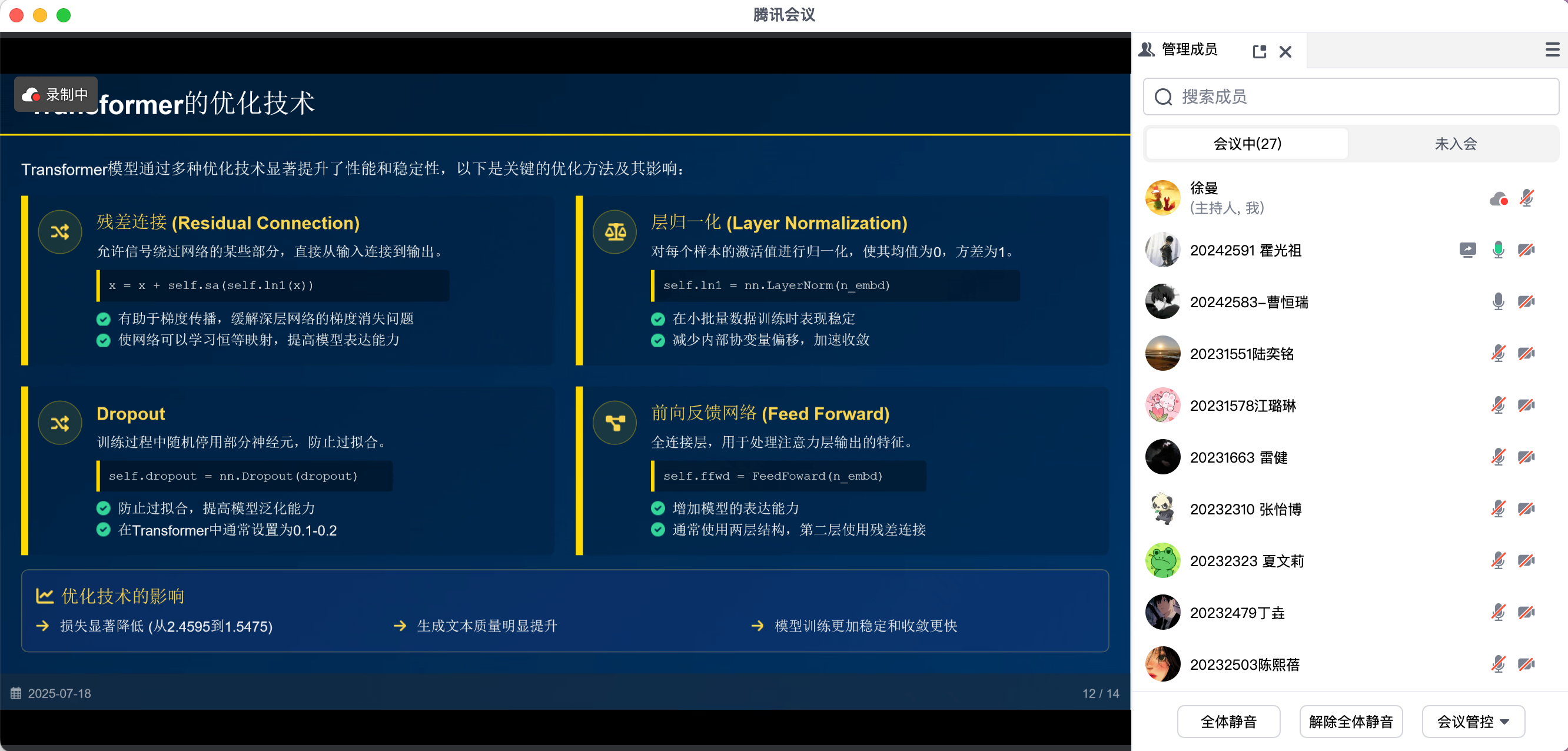 為跟進及適應人工智能產業技術快速發展和變革,本屆課程在第一屆課程基礎上全面升級,在教學內容和教學模式上均有改進。7月7日至7月18日,通過為期兩周的“理論+實驗+實踐”集中線上授課與實驗平臺強化訓練,所有學生順利完成第一階段的3門核心課程學習,學生全員通過英偉達深度學習基礎認證,完成《人工智能產業前沿技術導論》課程答辯和《人工智能技術實訓》課程答辯。