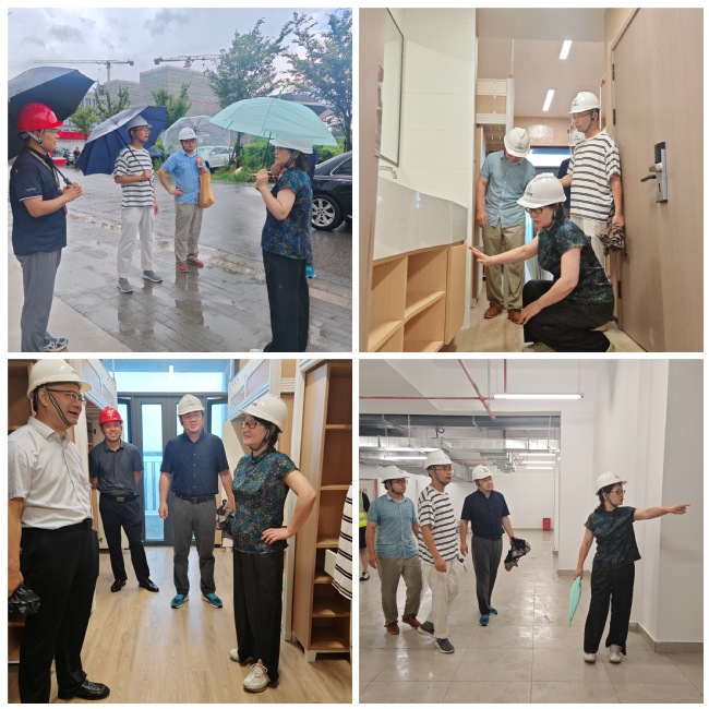 隨后,仰頤一行冒雨來(lái)到標(biāo)段一10號(hào)學(xué)生公寓項(xiàng)目現(xiàn)場(chǎng),實(shí)地檢查了工程質(zhì)量與移交過(guò)渡期的安全施工措施落實(shí)情況。她再次重申,必須將安全生產(chǎn)放在首位,尤其要加強(qiáng)夏季高溫期間的防火防暑工作。項(xiàng)目參建各方雖然將項(xiàng)目移交學(xué)校后勤部門了,但還是要做到“項(xiàng)目移交、基建不退“,繼續(xù)做好“參建保障、后續(xù)收尾”,注重精細(xì)化管理,做好成品保護(hù),避免資源浪費(fèi)。針對(duì)檢查中發(fā)現(xiàn)的問(wèn)題,仰頤要求相關(guān)責(zé)任部門立行立改,確保項(xiàng)目高質(zhì)量如期交付,為9月份學(xué)生順利入住奠定堅(jiān)實(shí)基礎(chǔ)。