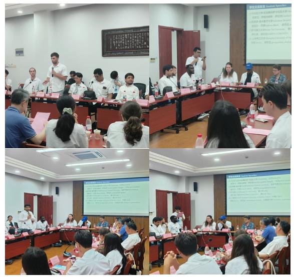 會議第二部分的文化交流座談由計算機科學與技術學院院長溫蜜主持。肯尼亞內羅畢大學的Mwai William Steve表示自己感受到了上海的先進,認為臨港是一個具有無限可能的新片區。俄羅斯莫斯科動力學院的Pavlov Egor分享在上海的游學經歷,表示在游覽城隍廟時開始了解中國文化,對中國文化產生了極高的興趣。泰國蘇南拉里大學的Kyaw Zaw Hlyan表示中國傳統習俗與其本國具有相通之處,此次的暑期游學有非常好的體驗,感謝上海電力大學的周到安排與熱情接待,感謝志愿者們的付出。匈牙利歐布達大學的Gábor Varga表示這是他第一次來中國,感受到了上海人的熱情,認為上海是一個安全、宜居的城市。