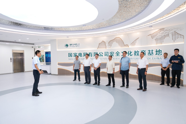 開班儀式后,教師們開啟了學(xué)習(xí)實踐的第一課“電力行業(yè)落實國家碳達峰碳中和目標(biāo)的路徑與舉措研究”。在蘇慶民、電網(wǎng)建設(shè)部副主任馮剛等陪同下,張波及有關(guān)職能部門領(lǐng)導(dǎo)參觀調(diào)研了安全體感訓(xùn)練中心。