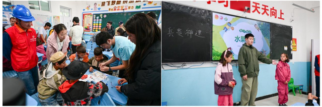 電力科普行,播撒科學夢想。上海電力大學“石榴花開 滬喀同行”實踐隊與國家電網新疆電力(喀什塔縣)天山雪蓮共產黨員服務隊一同走進拉齊尼小學,以電力科普播撒知識種子。隊員們充分發揮專業優勢,精心設計“電力小課堂”,用動畫短片講解電的來源與安全用電常識,通過“水果發電”等趣味實驗,讓抽象的電學原理變得直觀可感。孩子們在實踐隊員的指導下親手連接導線、安裝電池,當插入西紅柿,小燈泡亮起的瞬間,笑聲與驚嘆聲灑滿教室:“原來電是這樣‘工作’的!”看到孩子們眼睛發亮的瞬間,實踐隊成員深刻認識到,知識的傳遞不僅是技能的傳授,更是將科學探索與普及的種子埋入幼小的心靈。喀什大學物電學院實踐隊成員開展普通話推廣教學,在語言溝通中增進了各民族情感交融。