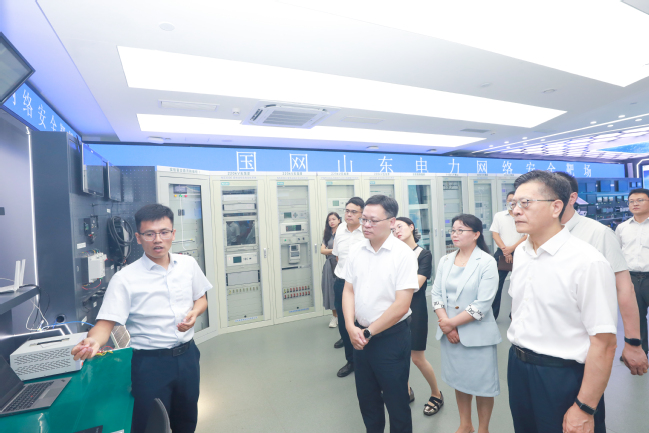 在電科院院長田健、副院長張都清等工作人員陪同下,張波及有關職能部門及學院領導先后參觀調研了山東電科院主題文化館、網絡安全實驗室、電能質量與技術線損監測分析實驗室和職業衛生防護與檢測技術實驗室。