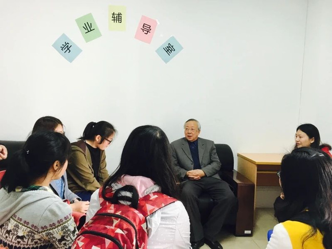 “快點!老教授已經(jīng)在那里等著了。”順著“三好堂”外的路望去,一位老人站在樹下,陽光穿過樹葉的縫隙零零散散地灑在他的身上,看到同學(xué)們朝他走去,他笑著迎了上來。參與見面會的楊帆同學(xué)回憶道:“當(dāng)時看到唐老師精神矍鑠、和藹可親……我們跑著過去,和老師打招呼,邊走邊聊。”退休后的唐儉老師每年都會來校和學(xué)生們見面,有時是獨自乘車來到臨港校區(qū)為同學(xué)們授課,有時是作為特邀學(xué)業(yè)導(dǎo)師在工作室為同學(xué)們答疑解惑,有時是為同學(xué)們的就業(yè)、升學(xué)寫推薦信……