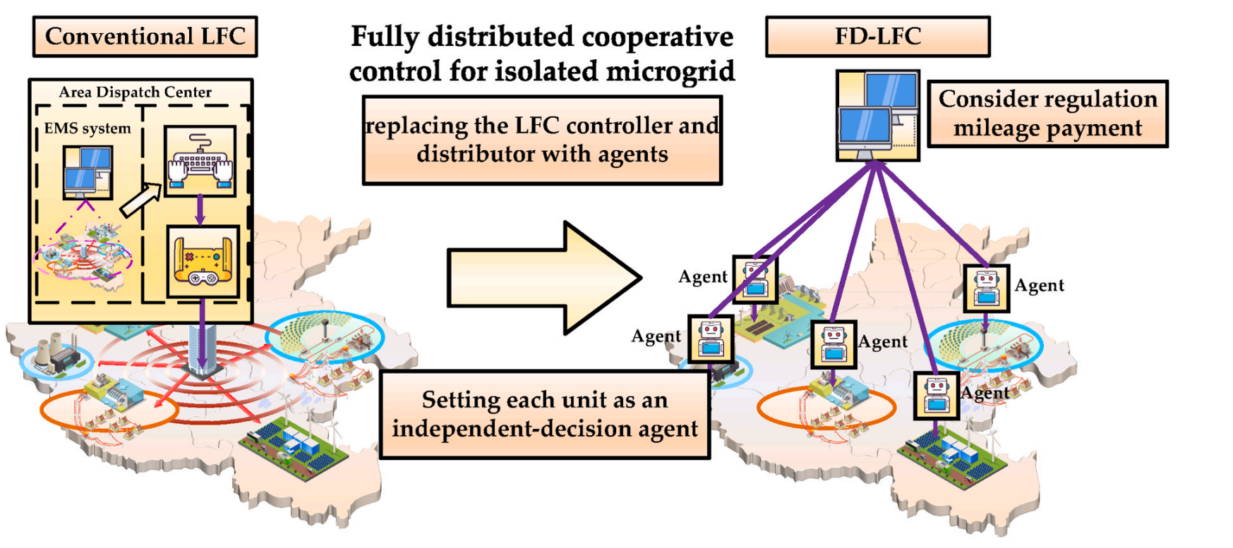 為促進(jìn)產(chǎn)消者參與孤立微電網(wǎng)頻率調(diào)節(jié)并解決基于性能市場(chǎng)機(jī)制帶來(lái)的控制復(fù)雜性與運(yùn)營(yíng)商利益沖突問(wèn)題,李嘉文副教授和崔昊楊教授及其團(tuán)隊(duì)創(chuàng)新性提出全分布式負(fù)荷頻率控制方法,使作為獨(dú)立智能體的調(diào)節(jié)服務(wù)提供商在線通過(guò)聚合本地頻率達(dá)成全局最優(yōu)決策,并在離線學(xué)習(xí)時(shí)設(shè)計(jì)兼顧自身與他人利益的獎(jiǎng)勵(lì)函數(shù);該方法通過(guò)引入基于高價(jià)值軌跡元知識(shí)的知識(shí)先驗(yàn)多智能體深度元演員-評(píng)論家算法實(shí)現(xiàn)快速協(xié)作多任務(wù)學(xué)習(xí),以生成高質(zhì)量控制策略;在中國(guó)南方電網(wǎng)運(yùn)營(yíng)的永興島孤立微電網(wǎng)的實(shí)驗(yàn)評(píng)估證實(shí)FD-LFC能平衡提供商利益,有效降低頻率誤差、發(fā)電成本和調(diào)節(jié)里程支付。其工程價(jià)值在于為含產(chǎn)消者的孤立可持續(xù)能源系統(tǒng)提供了一種能同時(shí)優(yōu)化系統(tǒng)頻率穩(wěn)定性、經(jīng)濟(jì)性并公平協(xié)調(diào)多市場(chǎng)主體利益的高效分布式頻率控制方法,推進(jìn)了清潔能源微電網(wǎng)智能運(yùn)行與市場(chǎng)機(jī)制協(xié)同優(yōu)化的發(fā)展。該成果以《Knowledge prior deep meta-reinforcement learning-based load frequency control of isolated sustainable energy system considering electricity prosumers》為題發(fā)表于《Journal of Cleaner Production》(中科院一區(qū),IF=9.7)。