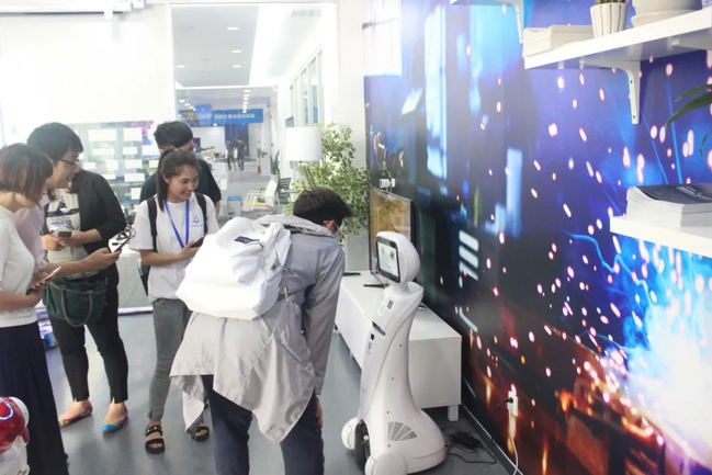 學(xué)生們?cè)诎⒗锇桶蛣?chuàng)新中心