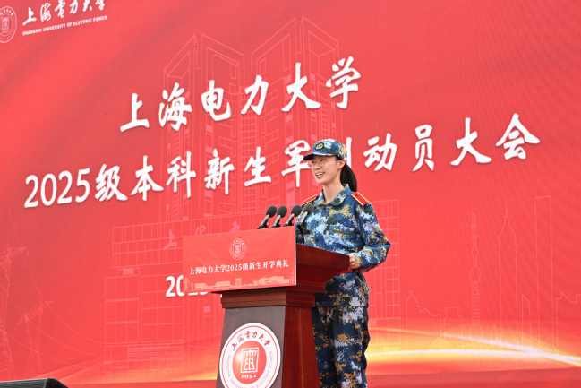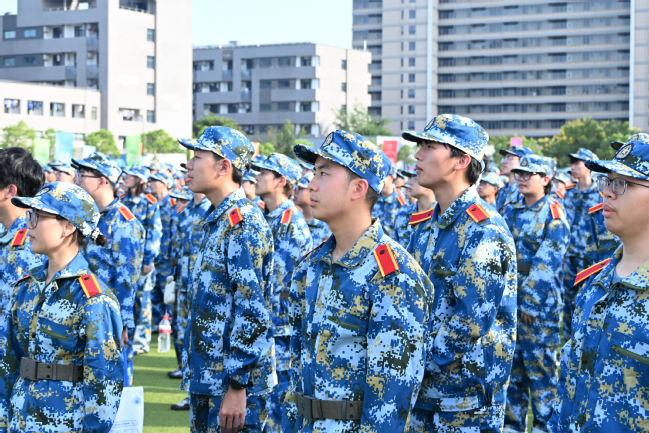 新生代表張珂悅同學(xué)發(fā)言,承諾以飽滿的熱情、昂揚(yáng)的斗志,完成軍訓(xùn)任務(wù),交出大學(xué)生活第一課的優(yōu)異答卷。