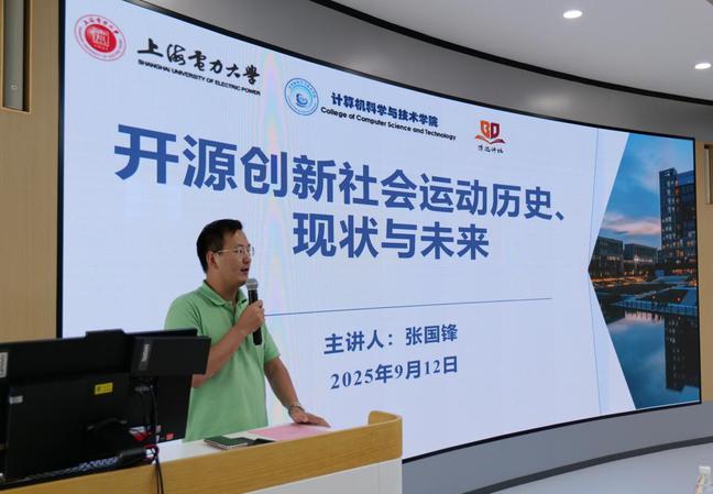 9月12日,計算機科學與技術(shù)學院博達講壇邀請上海開源信息技術(shù)協(xié)會秘書長、上海對外經(jīng)貿(mào)大學開源創(chuàng)新與數(shù)字治理研究院院長張國鋒,作《開源創(chuàng)新社會運動歷史、現(xiàn)狀與未來》主題講座。上海道客網(wǎng)絡科技有限公司首席運營官張紅兵,技術(shù)總監(jiān)李越,技術(shù)專家石勇軍、趙燕寧,人力資源總監(jiān)張倩倩應邀出席。學院常務副院長張傳林、黨委副書記齊永曉、教學秘書徐曼、計算機系主任葉文珺、《云原生&開源技術(shù)夏令營》課程負責人薛梅、團委書記盧珍參加本次講壇。