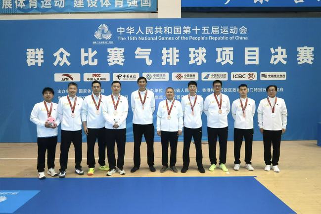 8月21日至25日,中華人民共和國第十五屆運動會群眾比賽氣排球項目決賽在廣東臺山舉行。本次氣排球項目比賽設置男子青年組、女子青年組、男子中年組、女子中年組、男子老將組、女子老將組、男女混合組七個組別。在此前進行的資格賽中,上海市代表隊共有女子老將組、男子老將組、女子中年組三個小項進入決賽。我校體育學院教師任建代表上海隊在男子老將組決賽中獲銅牌,取得上海市氣排球項目代表隊的最好成績;同時,全運會上海男子老將組代表隊以預賽第三名的成績晉級決賽。