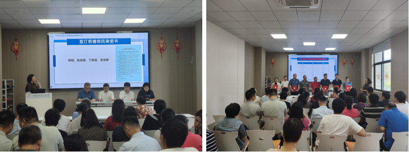 新進教師周明、陳炫穎、丁斯茗、李海蒂依次簽訂《環境與化學工程學院教師職業規范(師德師風)承諾書》,以書面形式鄭重承諾嚴守職業底線、恪守育人初心。陶瑩再次向全體教師重申要求,強調將師德師風內化為職業自覺,既要嚴格遵守“不碰紅線、不越底線”的紀律規范,更要主動涵養“以德立身、以德立學、以德施教”的高尚師風,切實擔當起學生健康成長的“引航者”。隨后,會議舉行了2025級本科生班導師聘任儀式。這支由八名新老教師組成的班導師隊伍,將為后續的學業指導、思想引領、生涯規劃等精準化育人工作提供堅實保障。