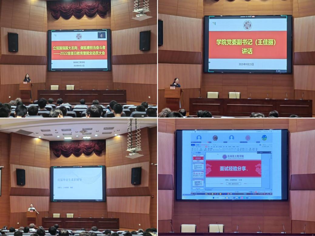 為進一步引導廣大學生堅定理想信念,樹立報國強國之志,努力成為堪當強國建設、民族復興大任的棟梁之材,新學期初,自動化工程學院圍繞“立報國強國大志向、做挺膺擔當奮斗者”主題,精心組織并扎實開展了內容豐富、形式多樣的首日教育活動。活動覆蓋學院全體本科生,由各年級輔導員牽頭組織,學院黨政領導班子、新生班主任、企業HR、朋輩榜樣等共同參與。