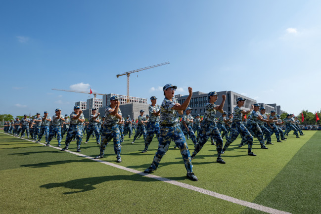 9月28日上午,我校2025級(jí)本科新生軍訓(xùn)成果匯報(bào)暨總結(jié)表彰大會(huì)在臨港校區(qū)體育場(chǎng)舉行。校黨委書(shū)記宋來(lái),中國(guó)人民解放軍94804部隊(duì)副旅長(zhǎng)韓曉釙,校黨委副書(shū)記、副校長(zhǎng)朱克勇,軍訓(xùn)師師長(zhǎng)劉杰傳,軍訓(xùn)師政委、校武裝部部長(zhǎng)金煒,校學(xué)工部部長(zhǎng)陳姍姍以及各二級(jí)學(xué)院黨委副書(shū)記、全體新生輔導(dǎo)員以及承訓(xùn)部隊(duì)教官出席大會(huì)。大會(huì)由武裝部副部長(zhǎng)余南飛主持。
