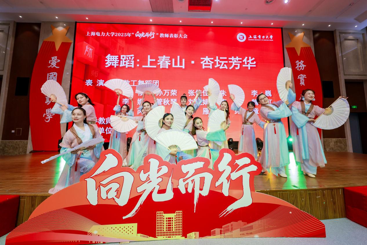 會上,教工舞蹈團表演《上春山·杏壇芳華》。
